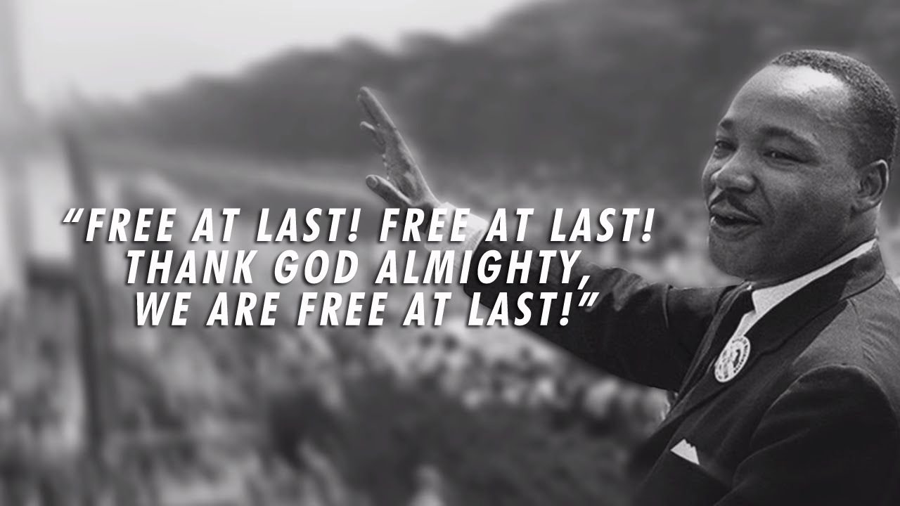 A statement that takes the form of a prayer at the end of Kings speech Some Things We Must Do delivered at the Second Annual Institute on Nonviolence and Social Change at the Holt. Free at last is a quote that was used by martin luther king jr. I have a dream.